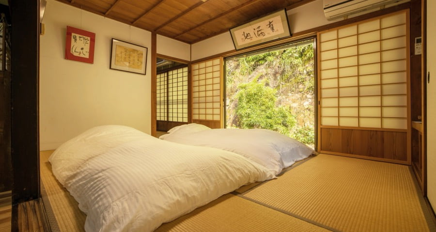 In Japan and Korea, you can often choose between a room with Western-style beds or a traditional (as in their tradition not ours) style room, which means the room will usually be set with a small coffee table-height table and low chairs during the day. At night, the staff (or you depending on the service level) will set out plush bedding on the ground. The positives to this are that you have more floor space during the day, and there is more flexibility in how the bedding is arranged so you may be able to accommodate more guests in your room. This originally seemed like a good solution for us, but because my back does not like to sleep on even semi-hard surfaces, I did not book any of these style rooms. If you ever do, be sure to book the correct number of guests in your room. Hotels in Asia are strict about the number of guests per room, charging more per person above two most of the time.
