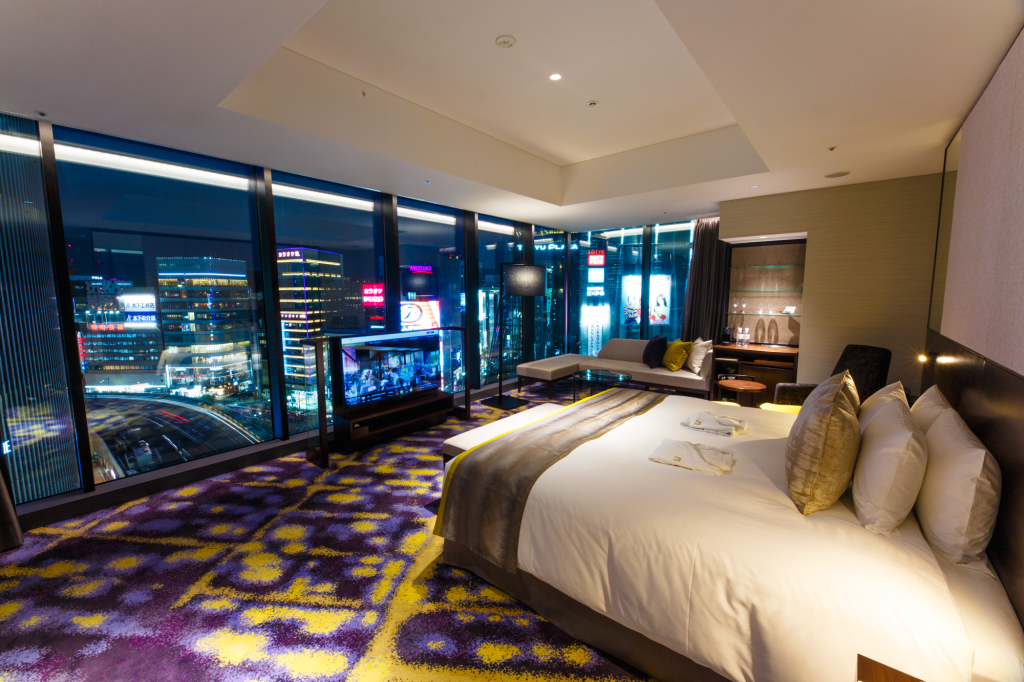 I almost booked The Gate Hotel in Ginza. The décor is modern but not stark; it has a luxury lounge area for certain room levels but also a nice elevated bar with indoor and outdoor seating overlooking the district. The hotel rooms have terrible carpet but amazing views.