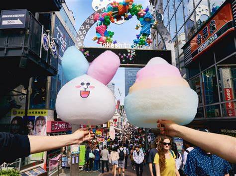 The food – there are so many unique foods to try. Some of the most unique are giant rainbow cotton candy, fluffy stacks of pancakes, lots of things on sticks. But I think Jackson and I are most interested in the cute food. The Juku areas will put a cute face on anything.