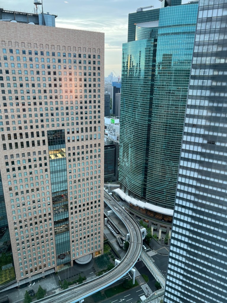 The view from our hotel room gives a sense of the multiple layers of roads and walkways in the Shiodome area.