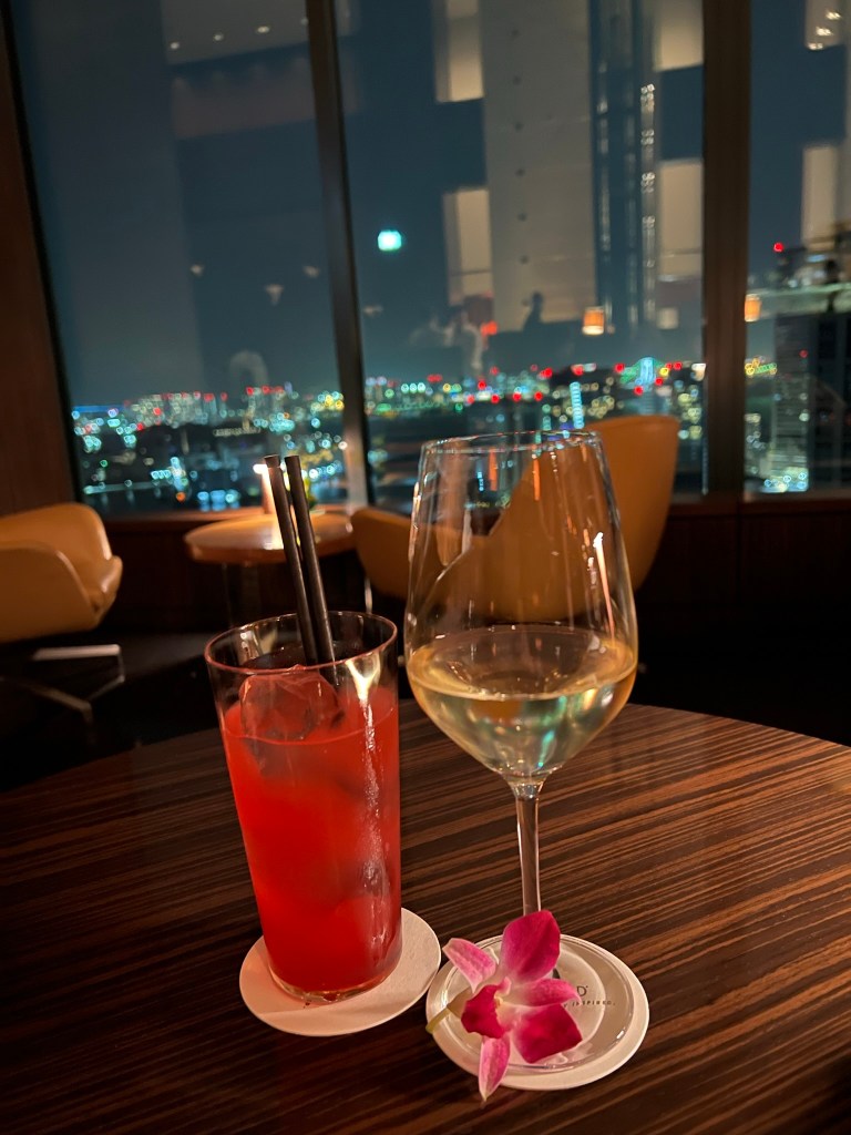 Since it was our last night at The Conrad, after dinner, I was determined to have a drink in the 28 Lounge and pay more for one glass of Sauvignon Blanc than I had for all of our ramen. Despite being overpriced, the Lounge and the night views of the bay were well worth the cost.